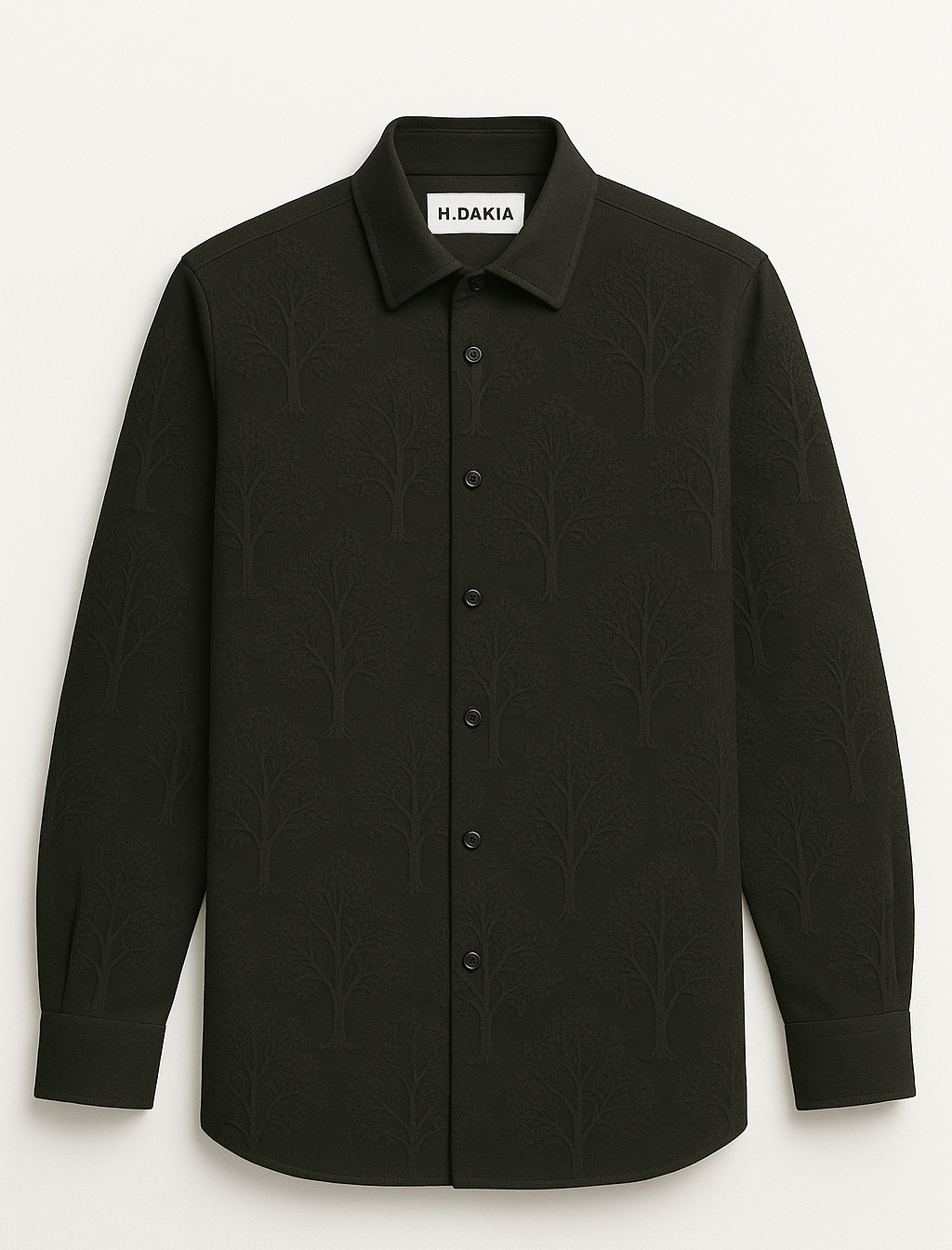 Crafted for those who find strength in stillness, this black shirt is embroidered with a subtle woodland motif—trees rooted in tradition, branching toward individuality. A statement of quiet confidence, elevated through minimalist form and textured detail.